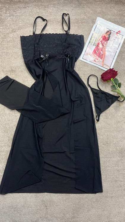 لباس خواب حریر و گیپور ماکسی