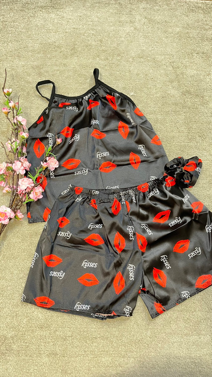 ست راحتی فانتزی شامل تاپ بندی و شلوارک با طرح بوسه، انتخابی لطیف و دلبر برای خواب و استایل خانگی.پارچه نرم، سبک و لطیف با حس خنکی روی پوست، مناسب استفاده روزمره و خواب راحت.تاپ بندی با فیت آزاد و شلوارک کمرکشی نرم که هیچ فشاری ایجاد نمیکند.طراحی کیوت و دخترونه، مناسب سلیقههای ظریف و مینیمال