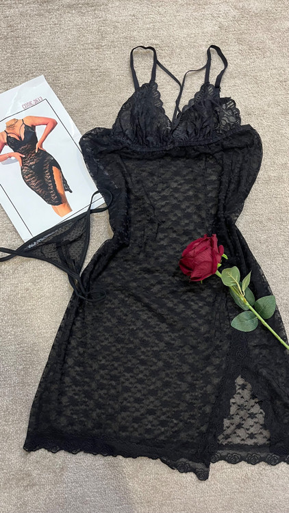 لباس خواب زنانه گیپور مشکی با طراحی ظریف و بدننما، انتخابی جذاب برای شبهای خاص و استایل فانتزی.بالاتنه با گیپور ظریف و بندهای قابل تنظیم طراحی شده و قسمت دامن از تور گیپور بدننما تشکیل شده که فرم اندام را بسیار زیبا نشان میدهد.همراه با شورت لامبادا ست ارائه میشود و مناسب استایل شیک و رمانتیک است.